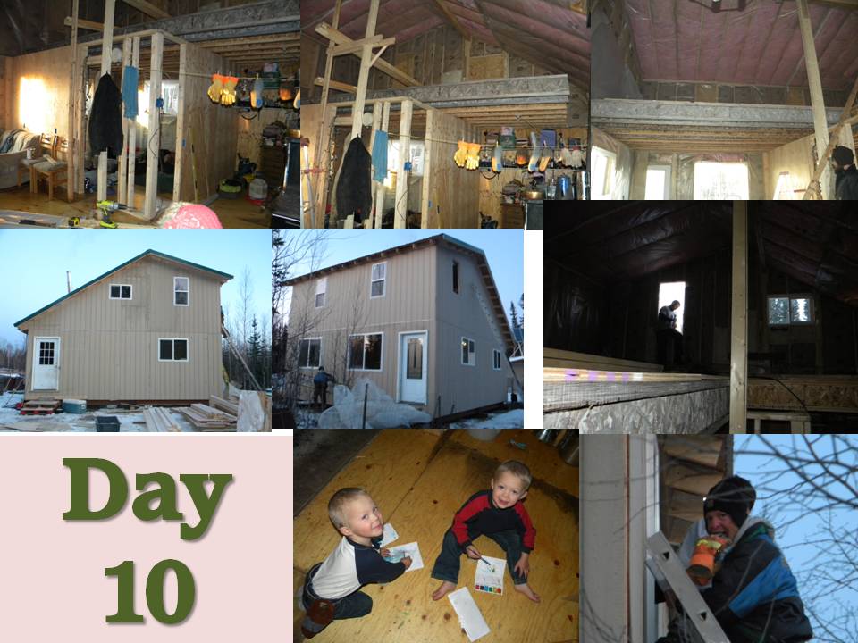| Second outer wall up and starting to insulate. Kids pulling nails. |